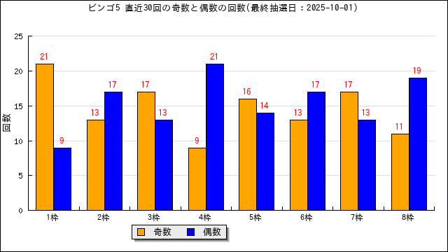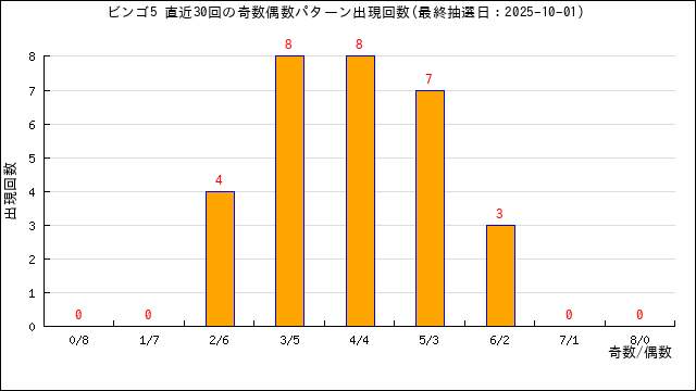 当選番号の奇数・偶数の出現数をグラフにしました。
