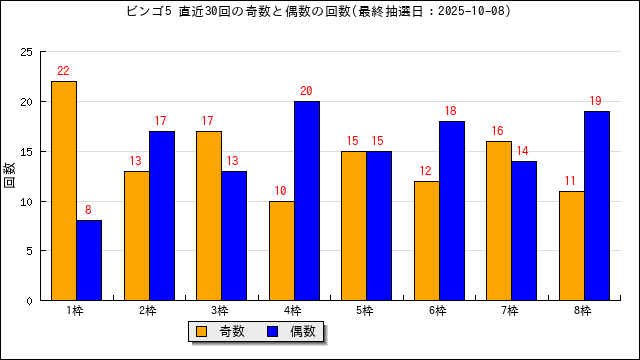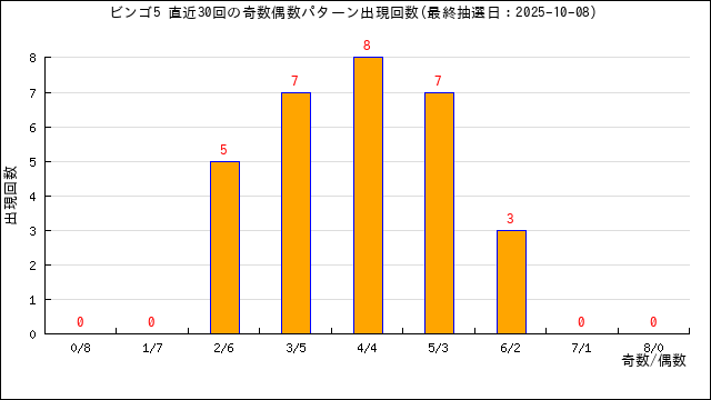当選番号の奇数・偶数の出現数をグラフにしました。