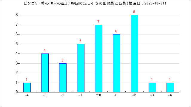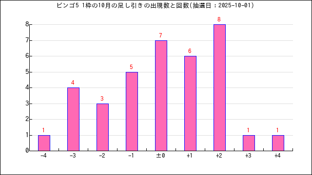 ビンゴ5の直近の当選番号の足し算・引き算の値を分析
