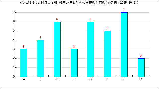 ビンゴ5の直近の当選番号の足し算・引き算の値を分析