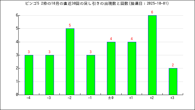 過去30回の当選番号の足し引き数値の出現表です。