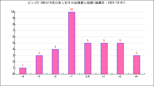 ビンゴ5の直近の当選番号の足し算・引き算の値を分析