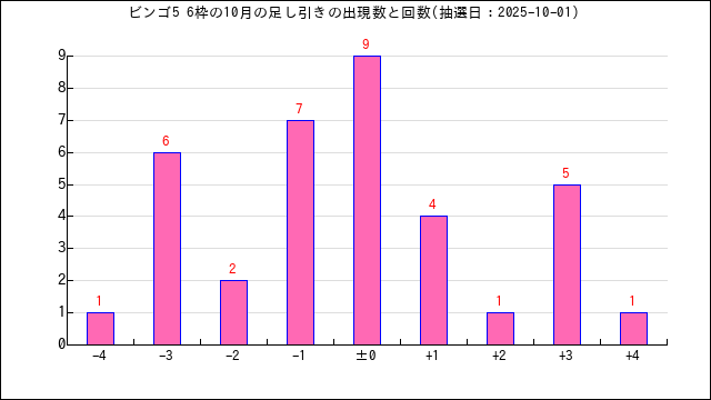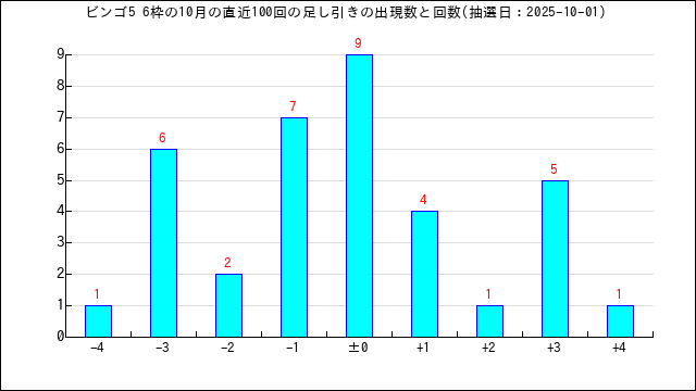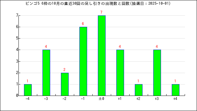 ビンゴ5の直近の当選番号の足し算・引き算の値を分析