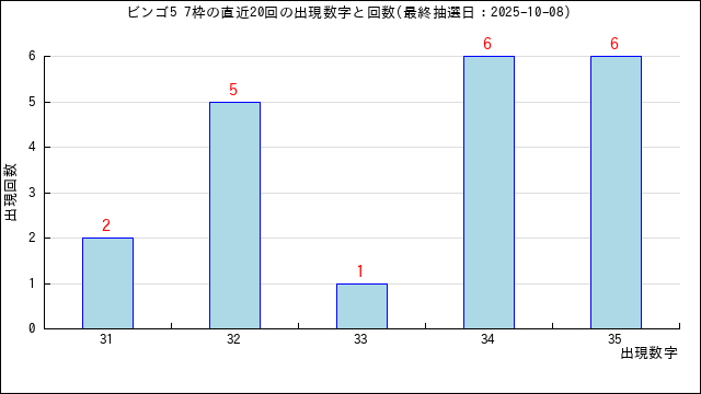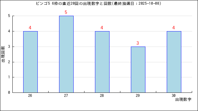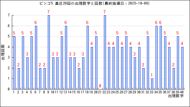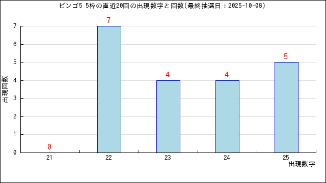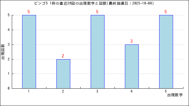 5枠に出た当選番号の出現回数グラフです。