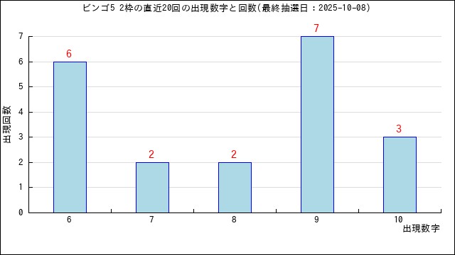 2枠に出た当選番号の出現回数グラフです。