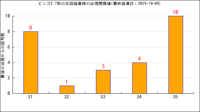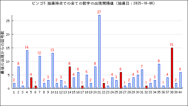 前回の当選数字の出現間隔値をグラフにしてみました。