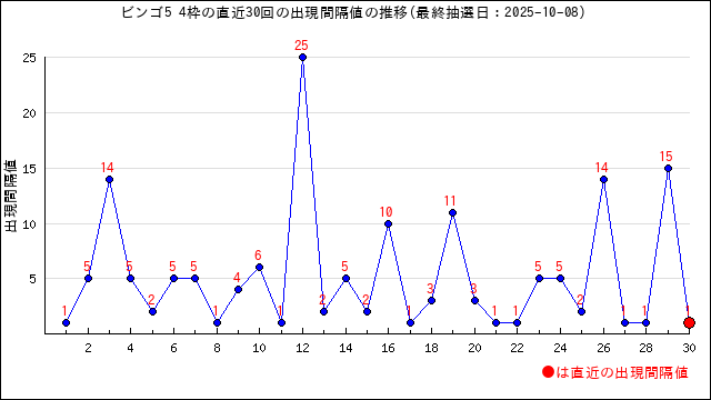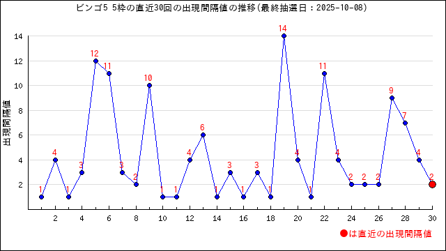 ビンゴ5各位置の出現間隔(周期)の傾向