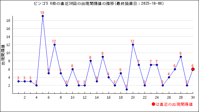 出現間隔値は6でした。