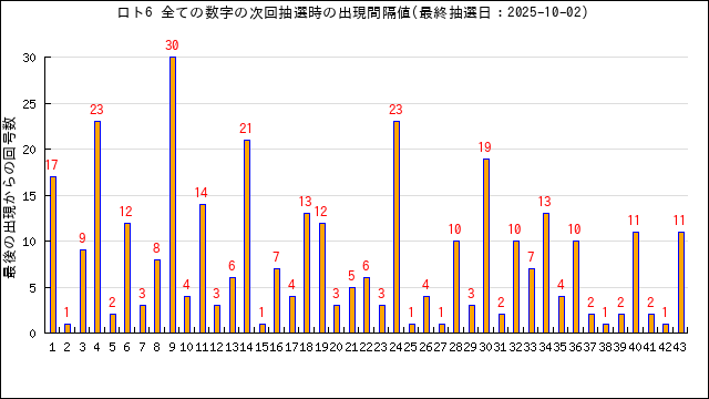・直近出現と安定型:6, 11, 18, 27, 32, 34, 40, 43