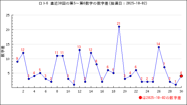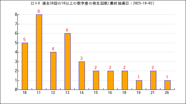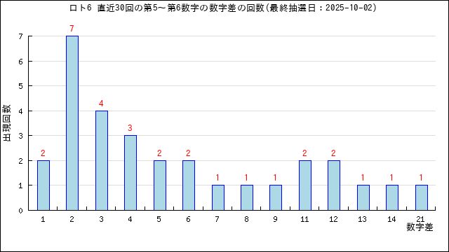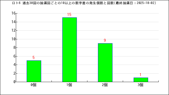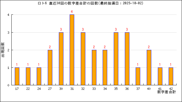 過去30回の数字差の合計の出現回数をグラフにしました。