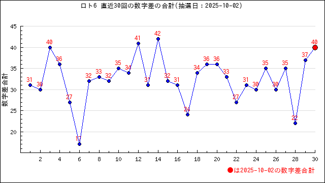 過去30回の数字差の合計の出現推移をグラフにしました。