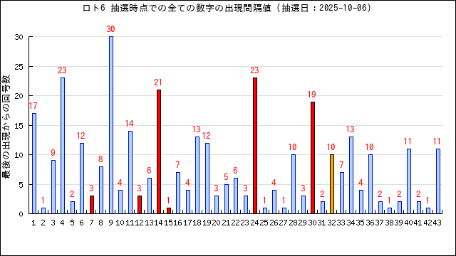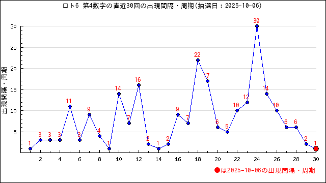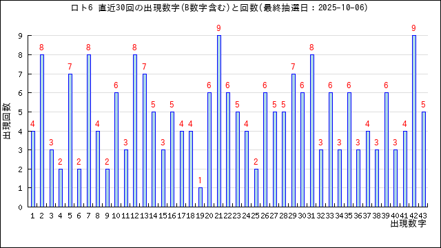 ( )内の赤数字は過去30回の出現回数。B数字も含む。