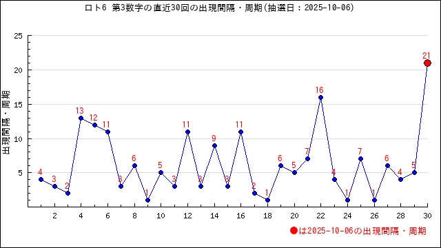 出現周期:(3)-(3)-(21)-(1)-(23)-(19)