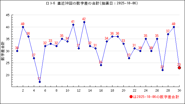 過去30回の数字差の合計の出現推移をグラフにしました。