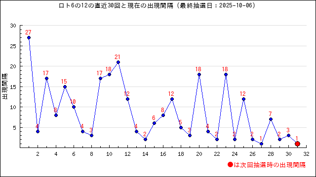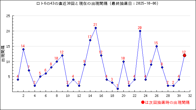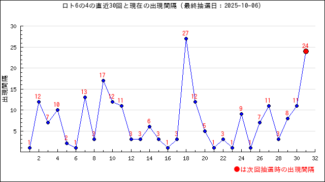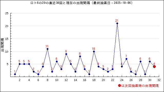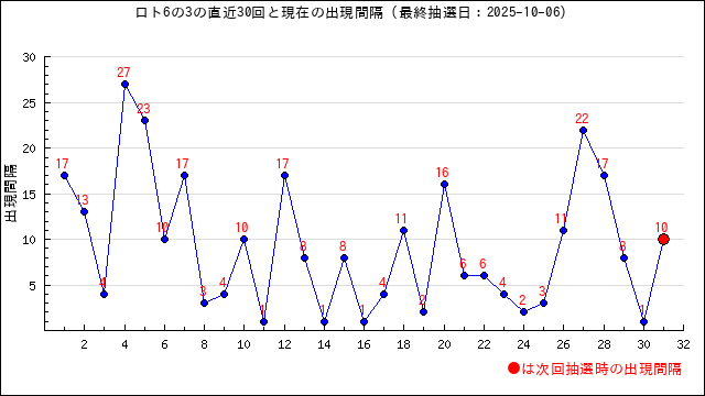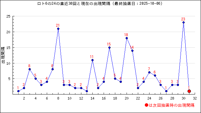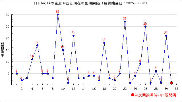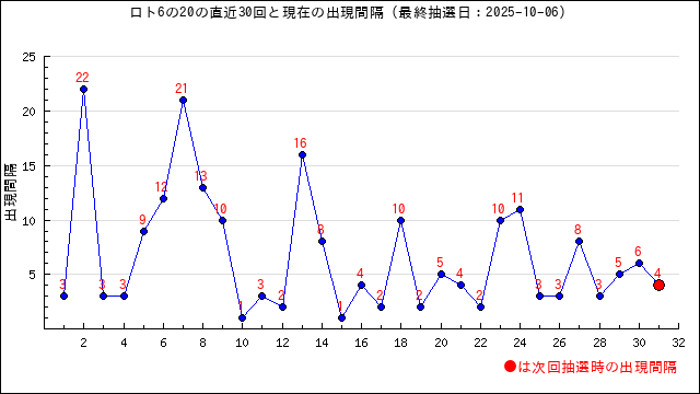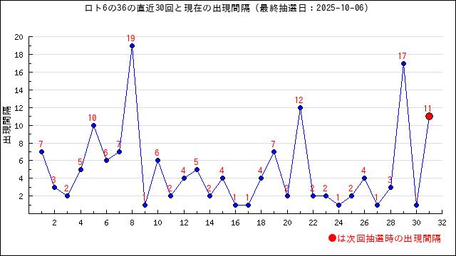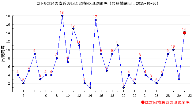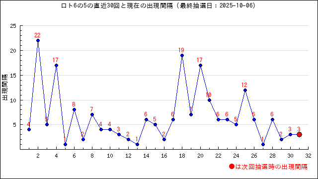 2,1,3,4,5,6回の間隔でよく出ているということです。