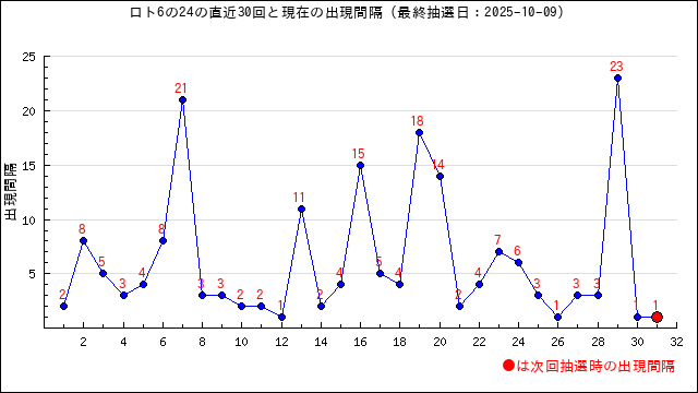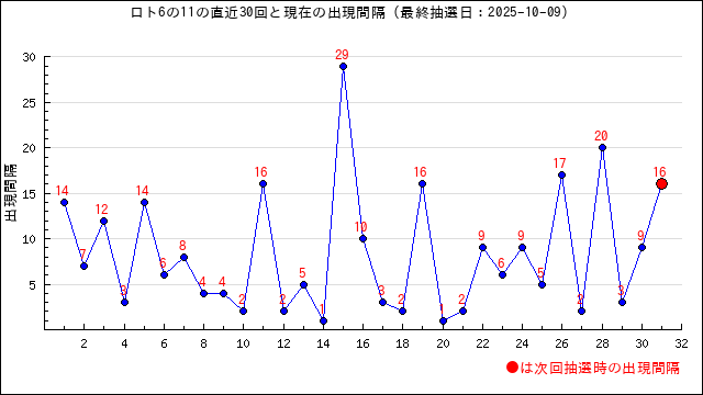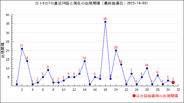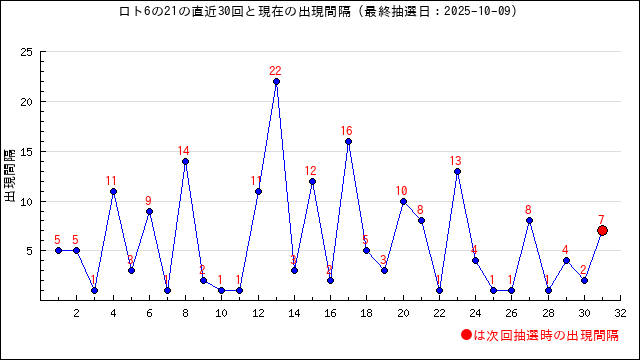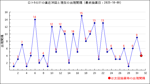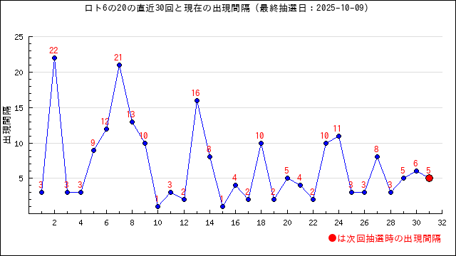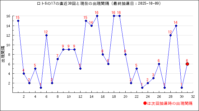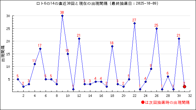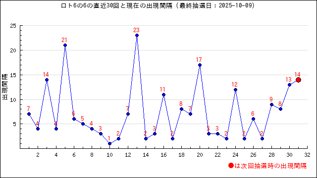 6の現在の出現間隔は14です。