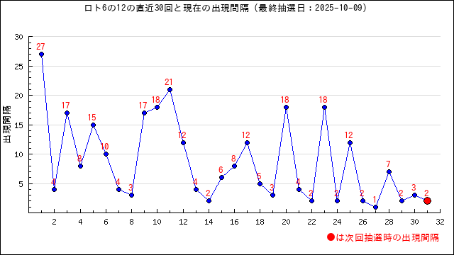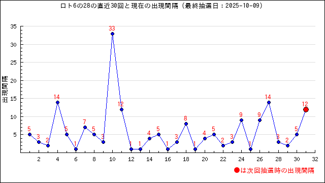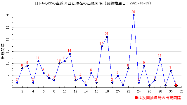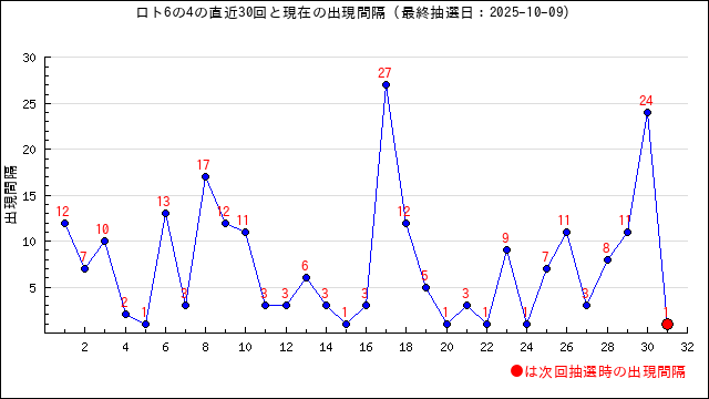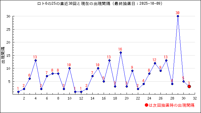 出現間隔値(出現周期)の過去30回をまとめました。
