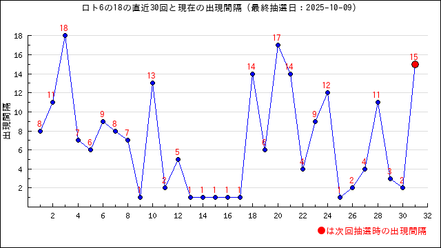8の現在の出現間隔は10です。