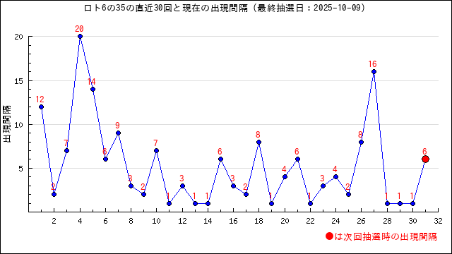 35の現在の出現間隔は6です。