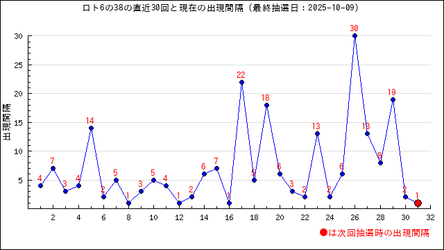 38の現在の出現間隔は1です。