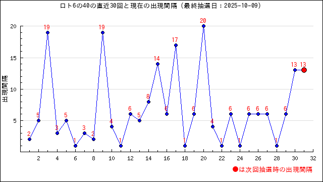 40の現在の出現間隔は13です。