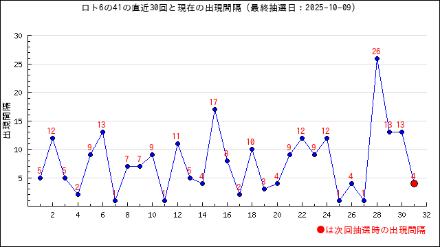 41の現在の出現間隔は4です。