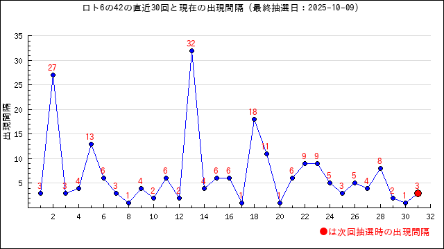 42の現在の出現間隔は3です。