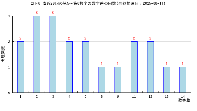 過去20回の数字差の合計の出現回数をグラフにしました。