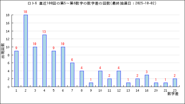 過去100回の数字差の合計の出現回数をグラフにしました。