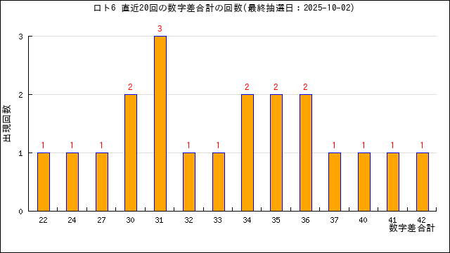過去20回の数字差の合計の出現回数をグラフにしました。