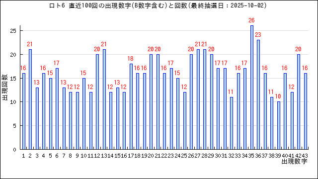 ( )内の赤数字は過去100回の出現回数。B数字も含む。