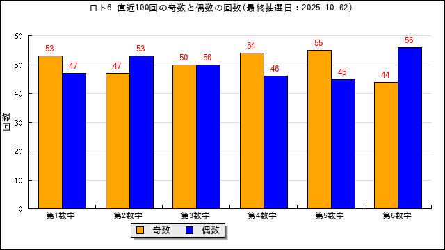当選番号の奇数・偶数の出現数をグラフにしました。