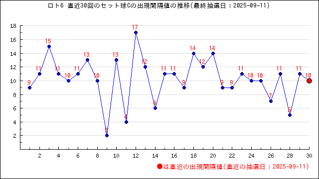 過去30回の出現周期(一番左は一番最近の周期・左から右に向かって古くなります) | セット球 | 1 | 2 | 3 | 4 | 5 | 6 | 7 | 8 | 9 | 10 | 11 | 12 | 13 | 14 | 15 | 16 | 17 | 18 | 19 | 20 | 21 | 22 | 23 | 24 | 25 | 26 | 27 | 28 | 29 | 30 |