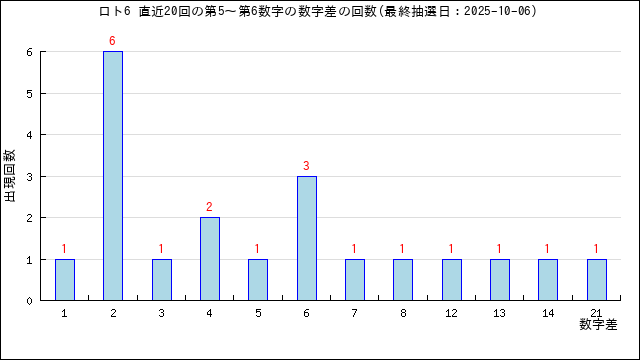 過去20回の数字差の合計の出現回数をグラフにしました。