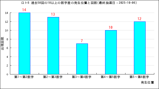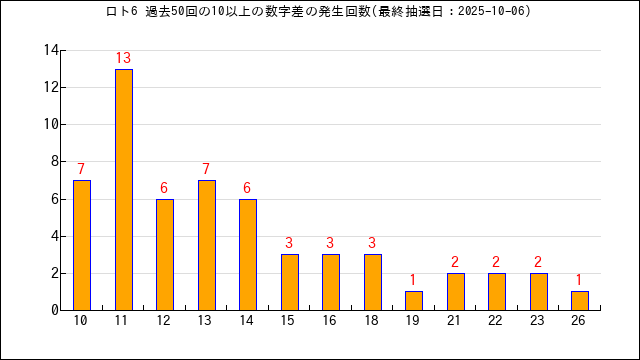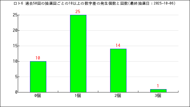 過去50回の数字差の出現回数をグラフにしました。