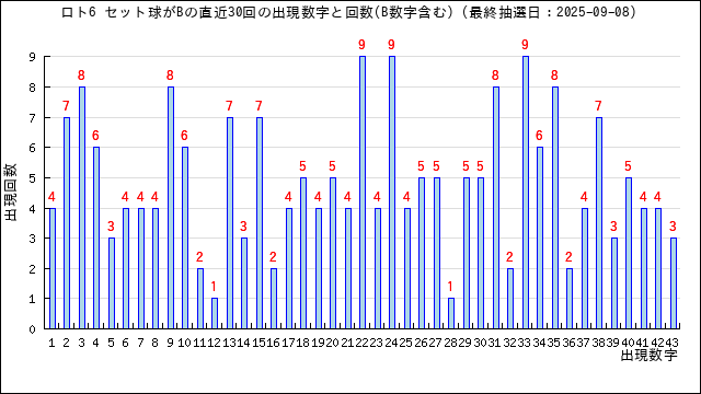 過去30回の出現周期(一番左は一番最近の周期・左から右に向かって古くなります) | セット球 | 1 | 2 | 3 | 4 | 5 | 6 | 7 | 8 | 9 | 10 | 11 | 12 | 13 | 14 | 15 | 16 | 17 | 18 | 19 | 20 | 21 | 22 | 23 | 24 | 25 | 26 | 27 | 28 | 29 | 30 |