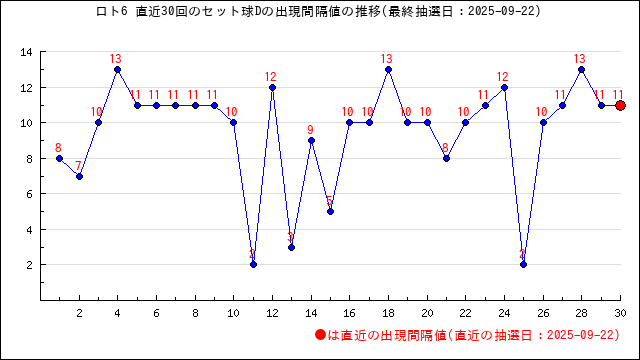 過去30回の出現周期(一番左は一番最近の周期・左から右に向かって古くなります) | セット球 | 1 | 2 | 3 | 4 | 5 | 6 | 7 | 8 | 9 | 10 | 11 | 12 | 13 | 14 | 15 | 16 | 17 | 18 | 19 | 20 | 21 | 22 | 23 | 24 | 25 | 26 | 27 | 28 | 29 | 30 |