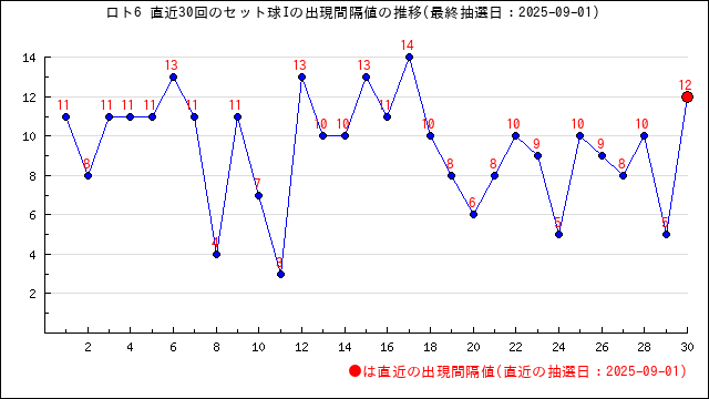 過去30回の出現周期(一番左は一番最近の周期・左から右に向かって古くなります) | セット球 | 1 | 2 | 3 | 4 | 5 | 6 | 7 | 8 | 9 | 10 | 11 | 12 | 13 | 14 | 15 | 16 | 17 | 18 | 19 | 20 | 21 | 22 | 23 | 24 | 25 | 26 | 27 | 28 | 29 | 30 |
