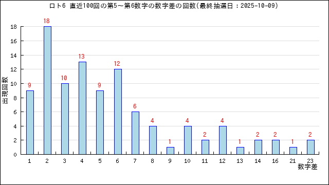 過去100回の数字差の合計の出現回数をグラフにしました。