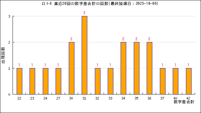 過去20回の数字差の合計の出現回数をグラフにしました。