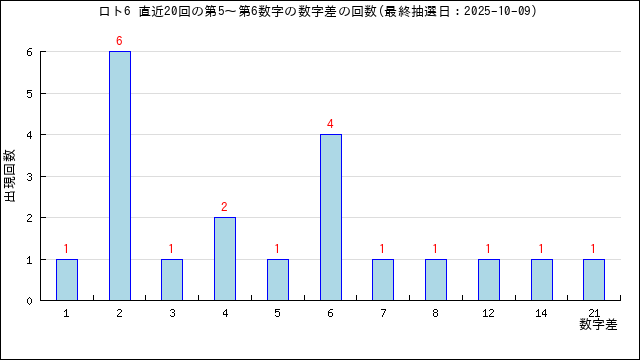 過去20回の数字差の出現回数をグラフにしました。