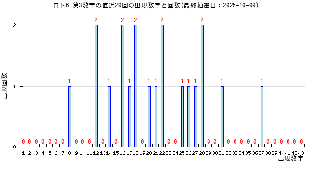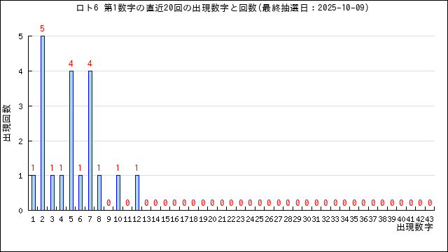 過去20回分の当選番号の出現グラフです。