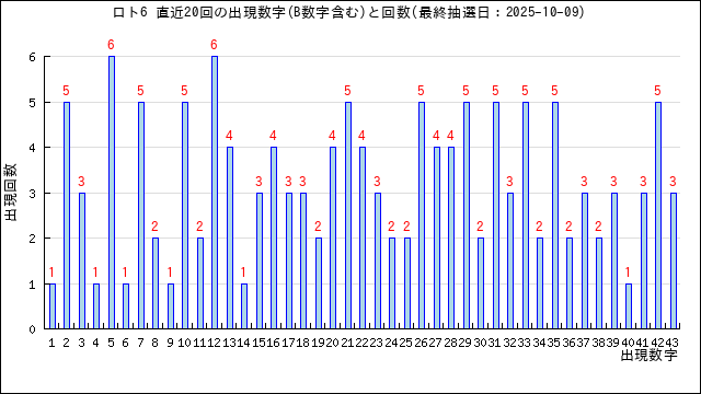 第6数字の出現回数グラフです。