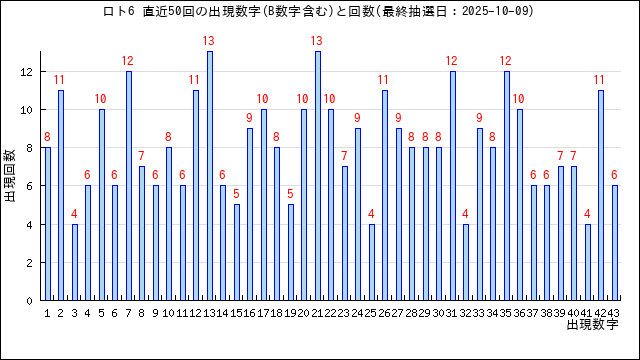 ( )内の赤数字は過去50回の出現回数。B数字も含む。