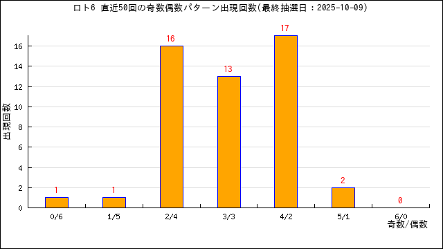 当選番号の奇数と偶数の組合せパターンをグラフにしました。