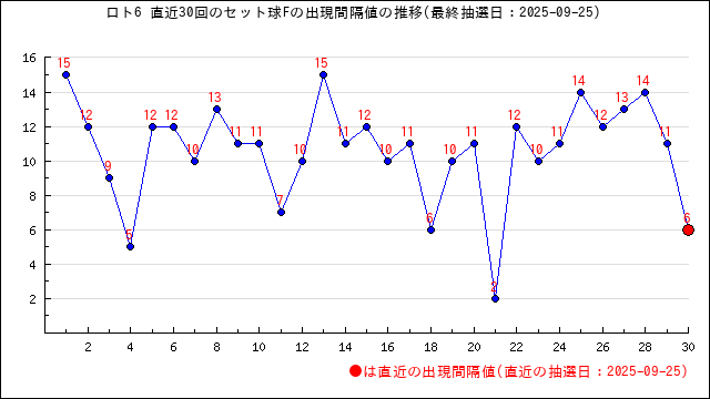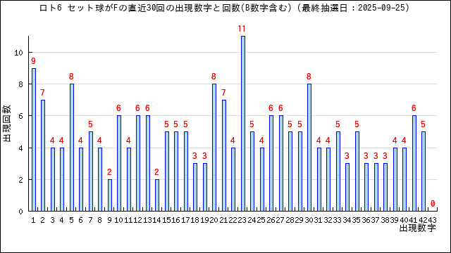 過去30回の出現周期(一番左は一番最近の周期・左から右に向かって古くなります) | セット球 | 1 | 2 | 3 | 4 | 5 | 6 | 7 | 8 | 9 | 10 | 11 | 12 | 13 | 14 | 15 | 16 | 17 | 18 | 19 | 20 | 21 | 22 | 23 | 24 | 25 | 26 | 27 | 28 | 29 | 30 |