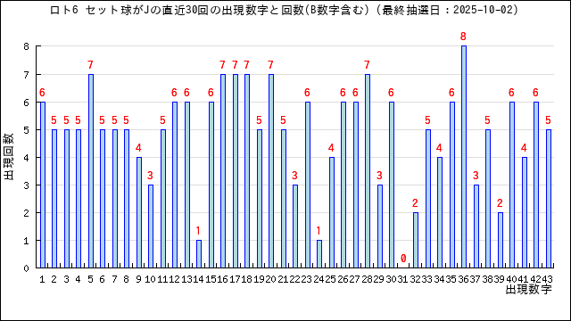 過去30回の出現周期(一番左は一番最近の周期・左から右に向かって古くなります) | セット球 | 1 | 2 | 3 | 4 | 5 | 6 | 7 | 8 | 9 | 10 | 11 | 12 | 13 | 14 | 15 | 16 | 17 | 18 | 19 | 20 | 21 | 22 | 23 | 24 | 25 | 26 | 27 | 28 | 29 | 30 |