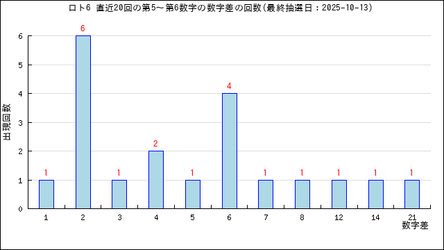 過去20回の数字差の合計の出現回数をグラフにしました。