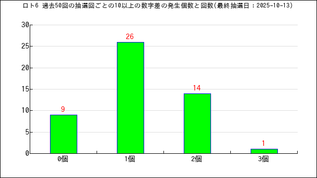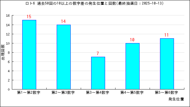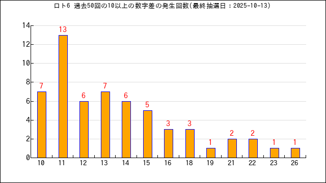 過去50回の数字差の出現回数をグラフにしました。