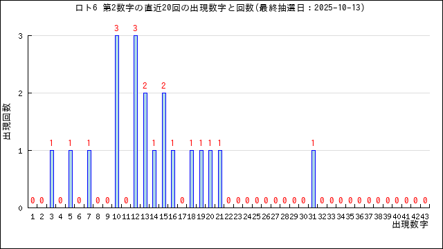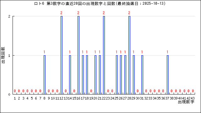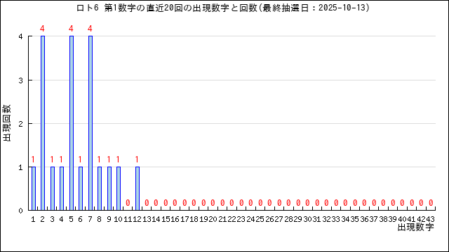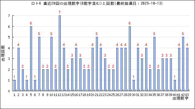 過去20回分の当選番号の出現グラフです。